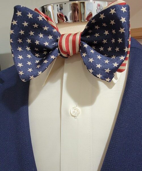 Americana Vintage Red/Tan Stripe with Navy Blue w/Tan Stars Italian Silk Handmade Bow Tie quantity